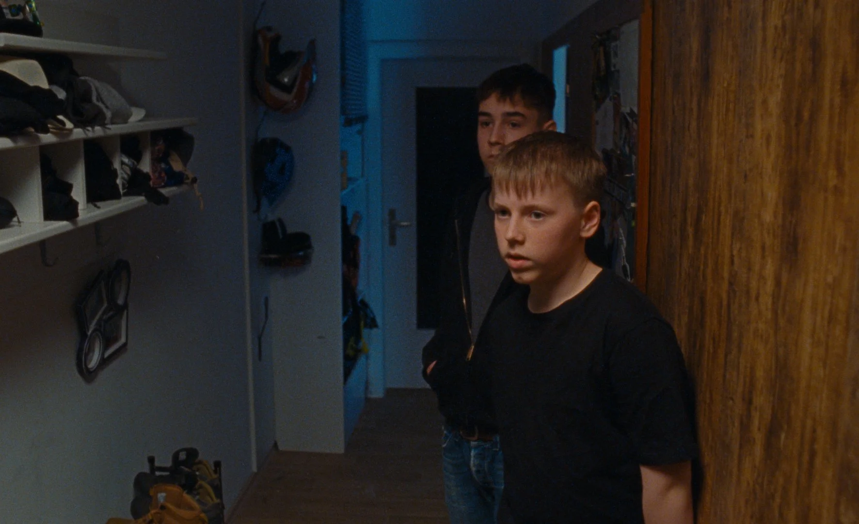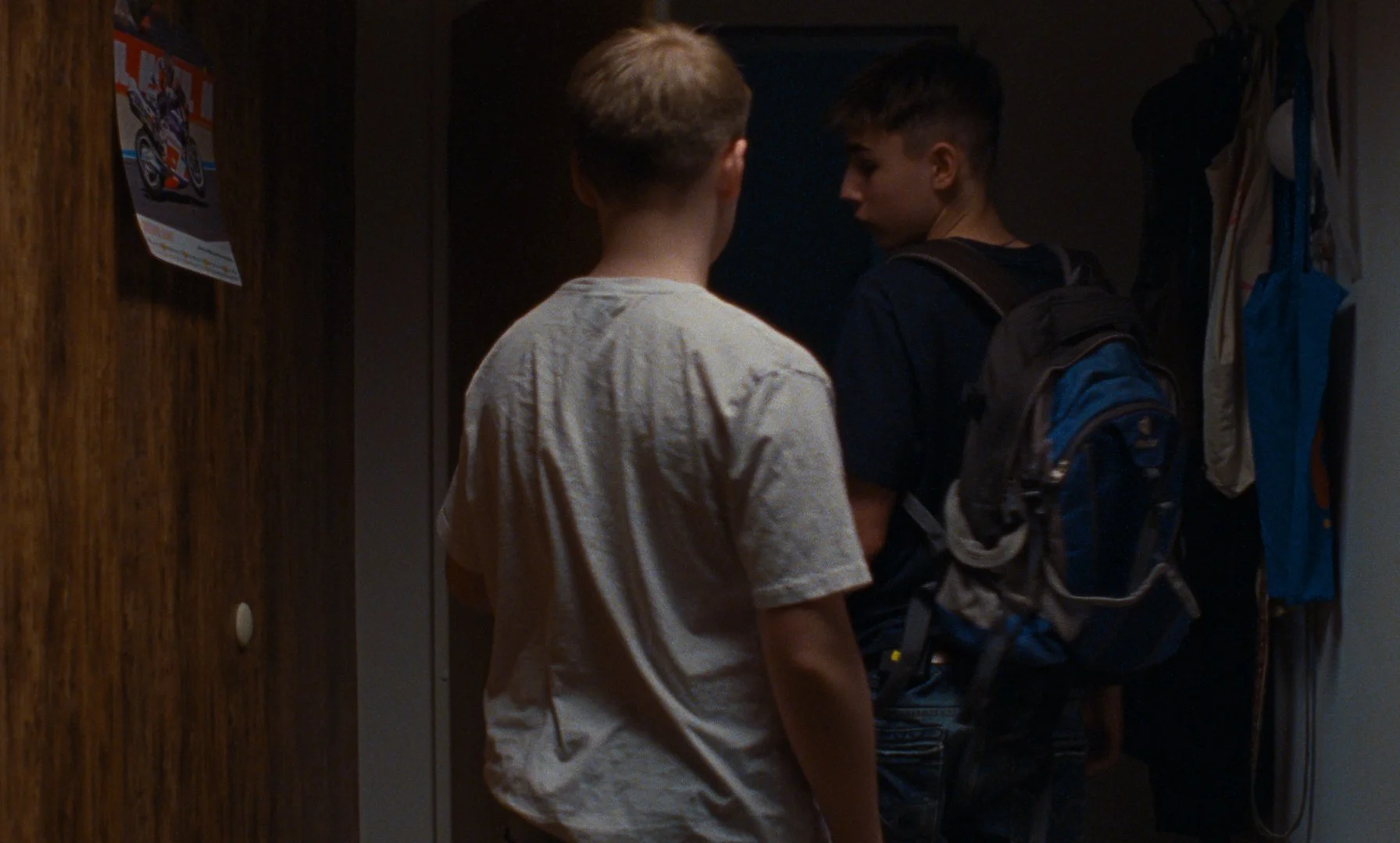 Two 12-year-old boys secretly watch their physically disabled neighbor having sex with a woman through the window. The next day, the doorbell rings.